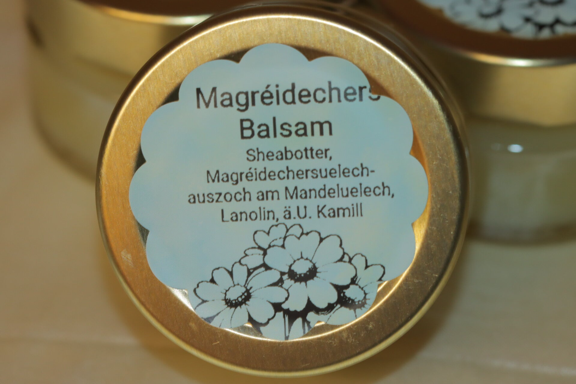 Se dréit zur Wondheelung bai an kann d'nemlecht wéi d'Rengelblummensalew oder den Magréidechersbalsam fir kleng Wonnen oder Irritatiounen genotzt gin.